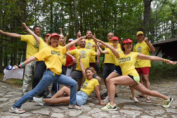 Global Family Team Building at the MiniBoss Summer Camp in Bulgaria. Teams of children and adults pass through different tasks.